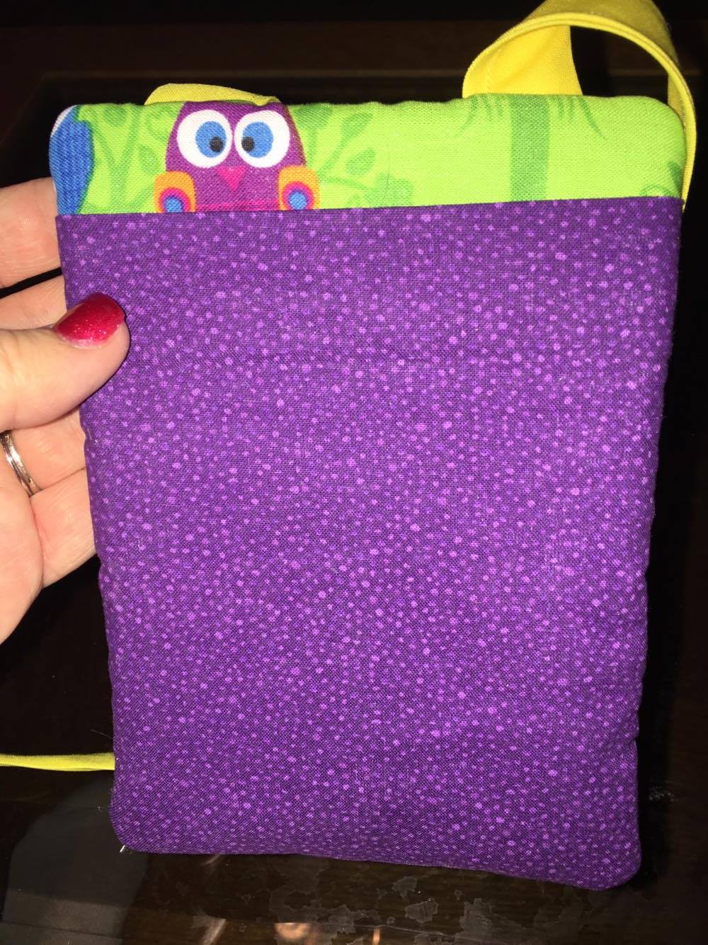 A similar design but with a single zipper is the Hipster Purse set. You can click here for the set. This purse also has a back pocket that is perfect for a phone. This set comes in two sizes, the 6x10 and the 5x7. I used the back pocket on mine to make it look like the owl is peeking out. My owl purse is the 5x7 size.